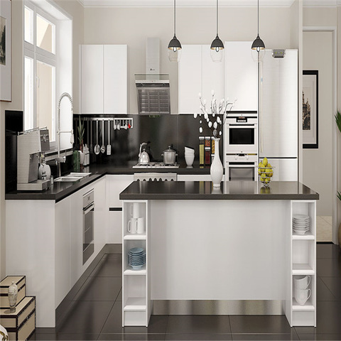 Tablero MDF de madera maciza de estilo clásico moderno, superficie de laca de armario de cocina Modular con fregadero de grifo y tablero de melamina