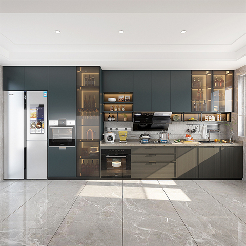 Puerta sin manos de melamina PET laca gabinete de cocina de aluminio sólido impermeable carcasa isla fregadero bisagra grifo para uso en apartamentos